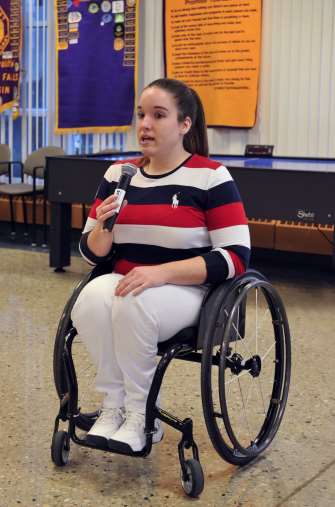 Becca Murray shared her inspirational story as a basketball champion and Paralympian at the Optimist Club February 8 meeting. Becca was born with Spina Bifida, but has not let that stop her from excelling. She has won multiple gold medals at international competitions. In last year’s gold medal game, she scored 33 of her team’s 62 points and was named Most Valuable Player.