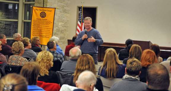 Murphy sustained fifteen gunshot wounds trying to apprehend a gunman during the attack at the Sikh Temple shooting in 2012. While describing the events of that day, he took note of our Optimist Creed banner. Murphy told our group that many of the Creed concepts helped him survive awhile he downed on the parking lot with fifteen bullets in his body.